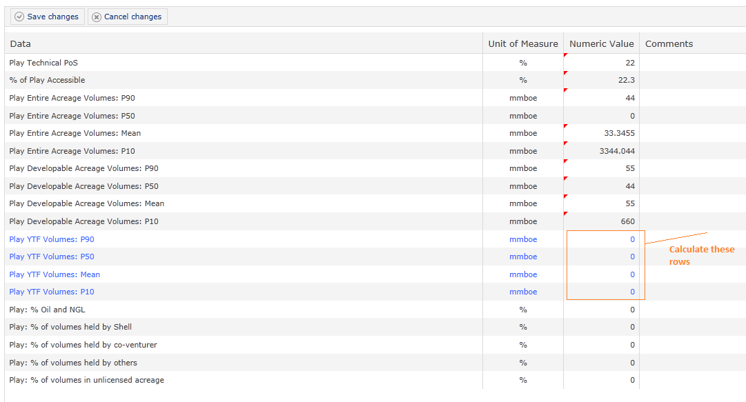 - There are some rows, that the user types in value (numeric), and there are some rows, that are calculated fields, and are not editable.