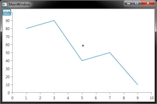 You can use the conversion api of the chart to determine the position of a tuple of values. Check the ConvertDataToPoint method of the chart. However, note that the Loaded event might be to early for the chart because at that time it might not yet know its final size. I guess you can use the SizeChanged event instead. Let us know how it goes.