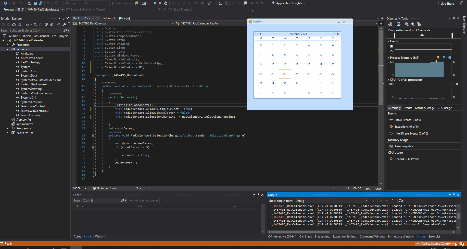 this.radCalendar1.SelectionChanging += this.RadCalendar1_SelectionChanging;