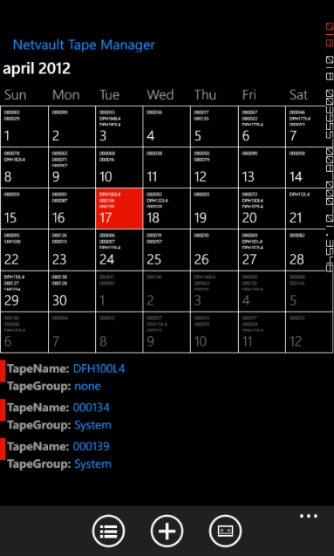 At time I'm developing a small local database application (SQLCe) for our IT stuff to manage the retire/recycle dates or schedule of our Backup tape library. In past this was paper based, then Excel based, but as the tapes amount has increased now up to 400 tapes, finding retired tapes for recycle is a tedious work. At first I wrote a desktop application, but released that I had to write down the tape names to paper, taking it to the server room and replace the tapes. I then decided to write a WP7 app which I can then use in the server room. The app is now a about 50 percent complete. On the main page I have a pivot control with serveral pivot items containing RadDataboundList control(s) which I fill with various observablecollections i.e. today's tape retirements, tomorrow, last week, next seven days, ... etc. All its left to do is the managing the tape retirements (add, edit, delete) and of course the tapes itself (add,edit, delete). When I was working on this stuff, I had the idea, that I also could show the tape retirements in a calendar view combined with a list at bottom (daily), simliar to the calendar's FirstLook sample. A time, all existing retirements are displayed including completed ones.