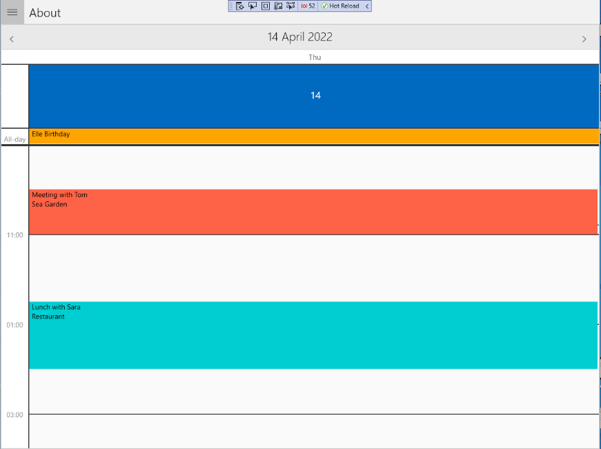 I have a problem regarding the Calendar DayView on UWP. The problem does not occur for my app on iOS or Android. When opening my page including the DayView the appointments are loaded correctly but the app is completly frozen and no further action can be taken. I tried multiple ways of loading the appointments and i will be posting my current setup below. For appointment loading i have tried the solution in the bug report https://feedback.telerik.com/xamarin/1497171-calendar-nullreferenceexception-when-setting-the-appointmentssource-in-uwp, which sadly does not fix the freezing problem.