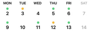 -- How to display weekends in grey? (Refer attached image: Event _Indicator)