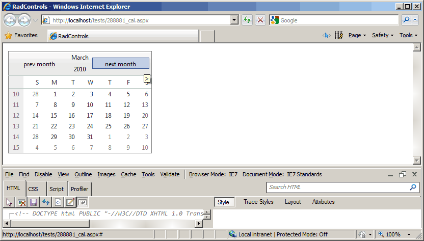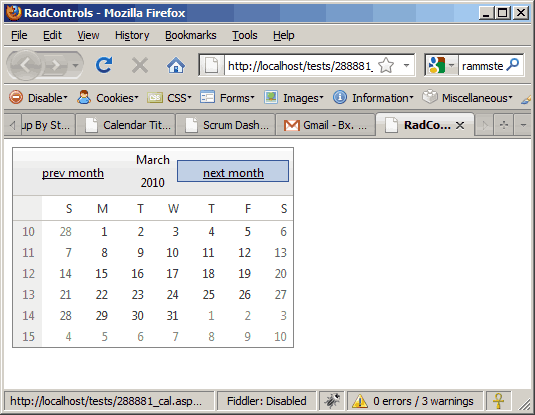 Requirement is to replace the < and > links in the Calendar titlebar to the text 'Previous Year' and 'Next Year' and make those links highlighted when the cursor hovers over them for both Firefox 3.5 and IE 7+ browsers. The CSS I defined in the .aspx file is below. It works fine in IE but the old 'CSS width property' issue with FF/IE is making the highlighted text appear inconsistent with IE (with the padding around the text). Any ideas on how to fix this?