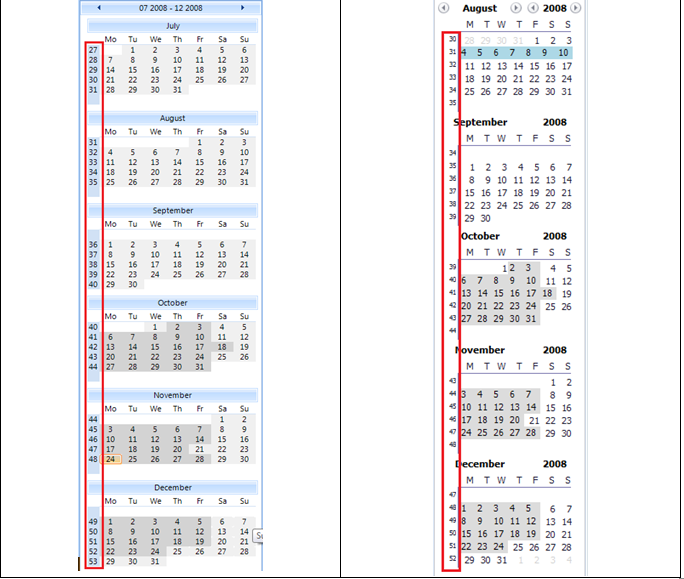 so after switching on Row headers in RadCalendar, we found out that the numbering does not correspond with our previous controls.