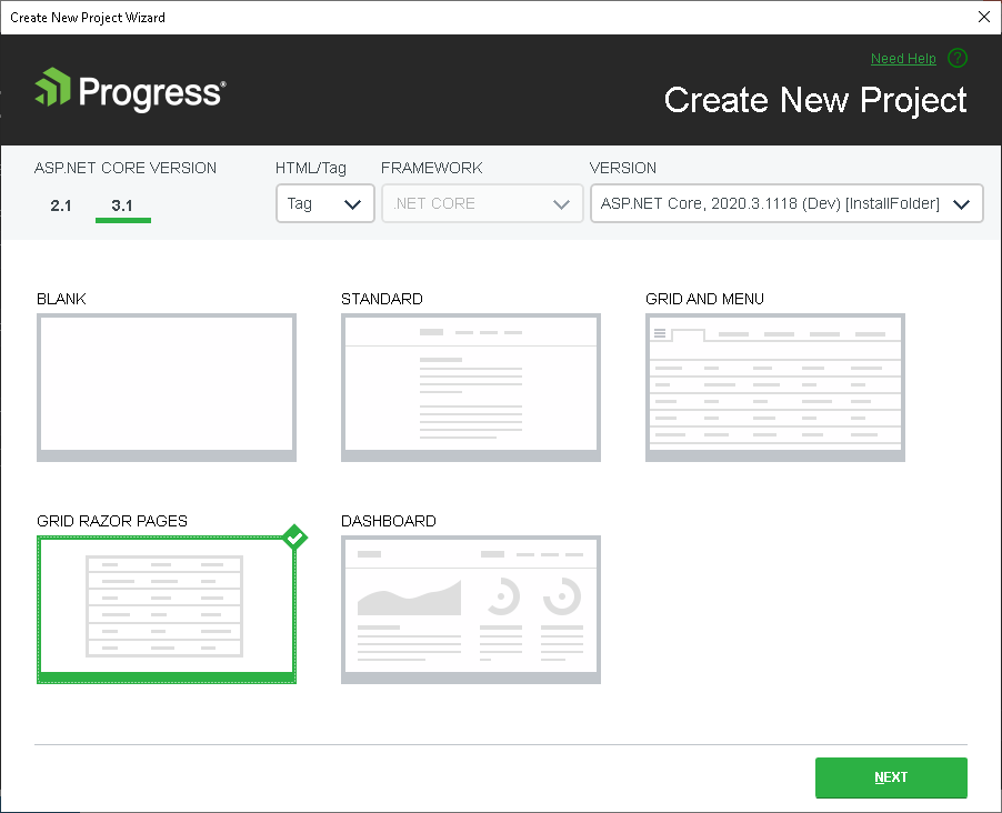 I'm trying to create a Telerik ASP .NET Core MVC Application (Grid Razor Pages) that uses .NET 5. However, there's not an option for .NET 5. Is this not possible?