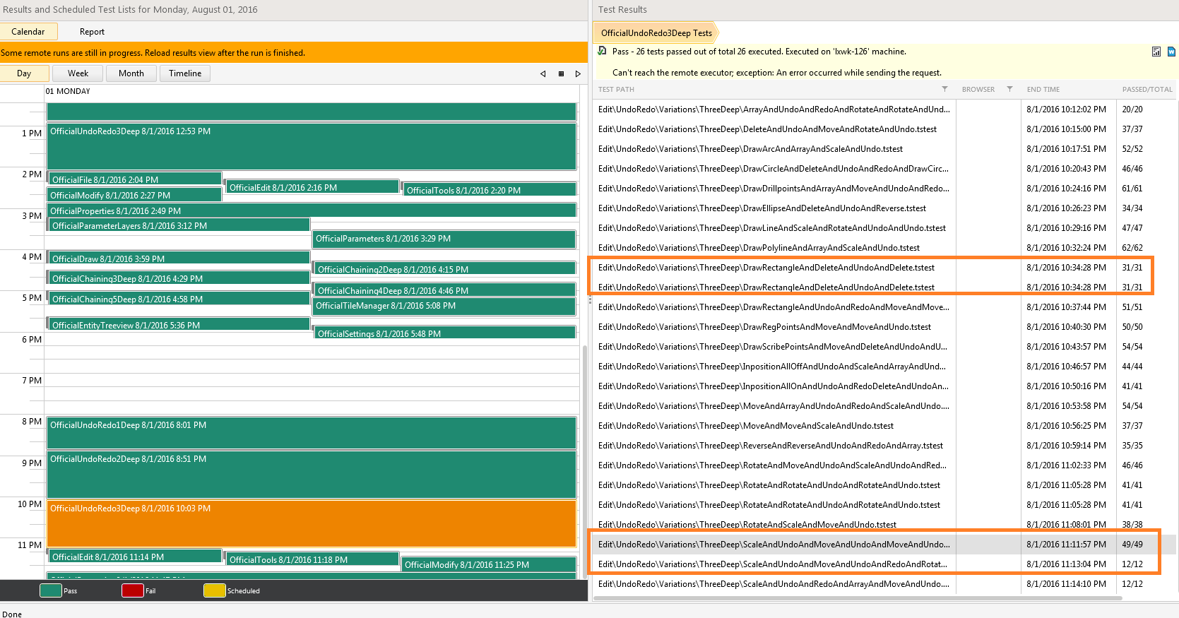 - Firstly, it says that 26 tests passed out of total 26 executed. As mentioned above...the OfficialUndoRedo3Deep test list has 24 tests in it, not 26. As we can see, 2 tests were ran an extra time (back to back): DrawRectangleAndDeleteAndUndoAndDelete.tstest, RotateAndRotateAndUndoAndRotateAndUndo.tstest. I have drawn orange boxes around the corresponding tests in ResultView.png. This is not expected behavior, how could this be happening?