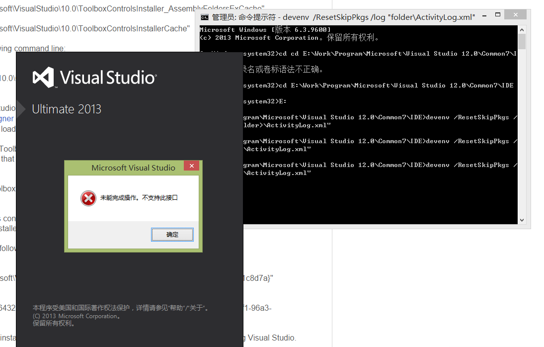 Based on your screenshot, you have executed ResetSkipPkgs for VS 2013. Then on starting VS 2013 a package failed to be loaded (indicated by the error).
