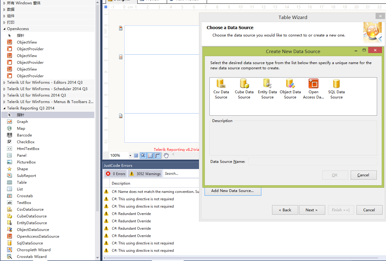 Missing data source components problem is related to issues on installing Telerik Reporting and missing Toolbox items in Visual Studio.