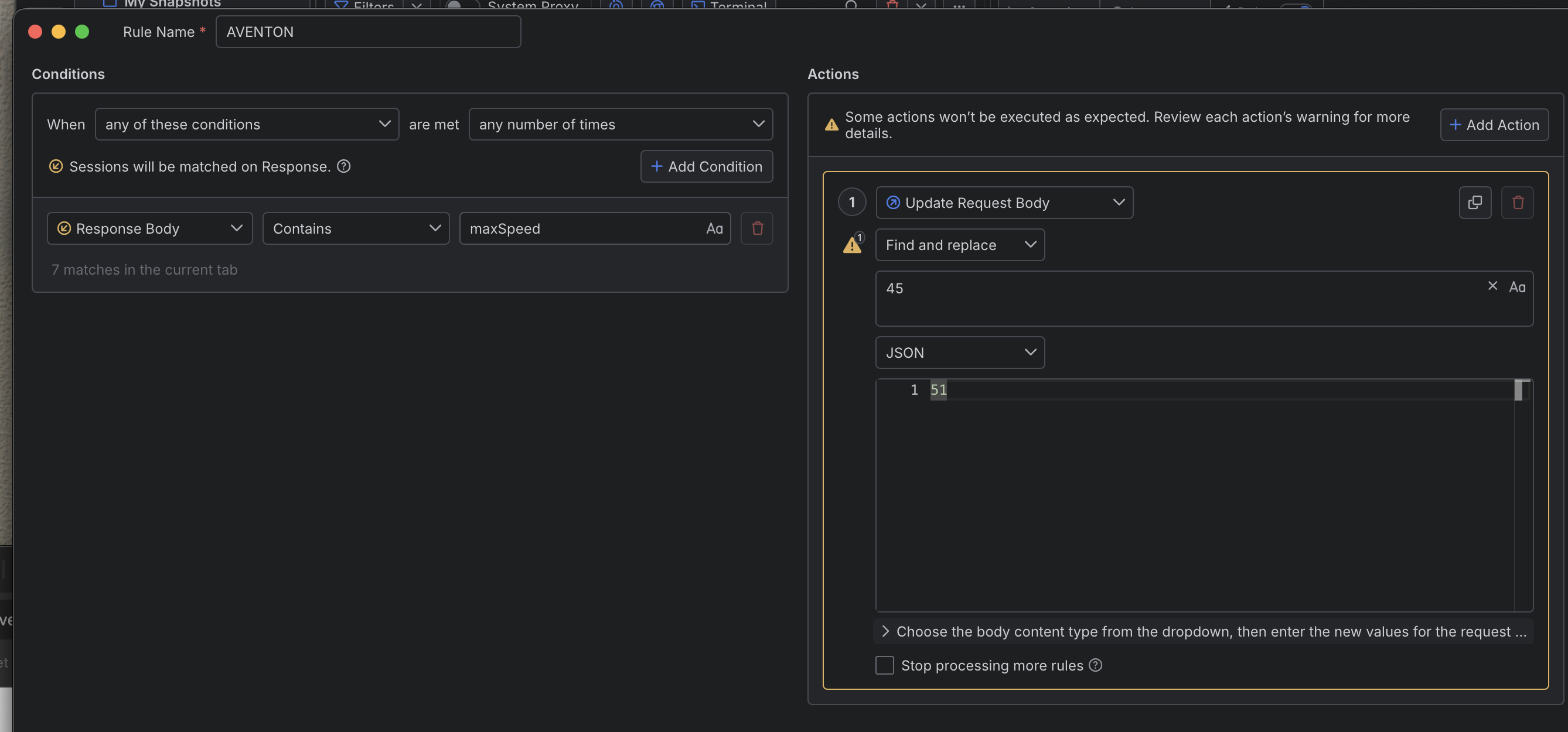 Following guide online to swap out the old max speed with the new max speed but i'm using a mac whereas most people used fiddler classic on windows and i'm not sure whether I put the values in the correct places within the rule. Anyone spot my noob mistake ? Seems like many people had success so I know it's possible and my phone with the app making the API calls is connected properly to Fiddler that's not the problem. Please any help is so appreciated ! Thanks so much