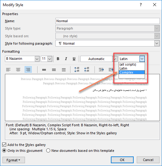 I'm working on a program that creates DOCX file from JSON data using Telerik word processing library. This file uses RTL language scripts.The problem is there is no way to set font style for complex script (not Latin) in styles. for example I set the font size to 11 but when I set the Run's FlowDirection to RightToLeft, the library ignores the font size and uses the default size (the size for Latin script). How can I set font size for complex scripts (like Arabic or Persian) ?