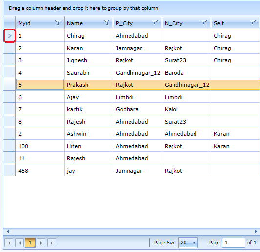 i am select 5th row of gridview but RowIndicator is not moved it's sticy to 1st row Please see in Attached image fille