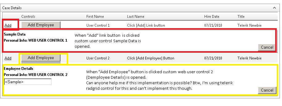 I already have 1 GridEditCommandColumn where I would display a sub section when clicked. But I need another GridEditCommandColumn because I have to have another sub section to display.