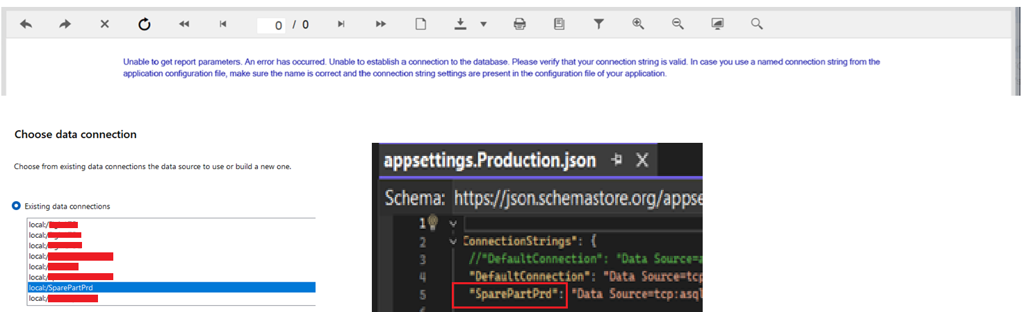 I've attached an image demonstrating that the named connections match both in the Telerik reports and in my appsettings.Production.json. What I'd like to know is what next steps you would recommend for resolving this.