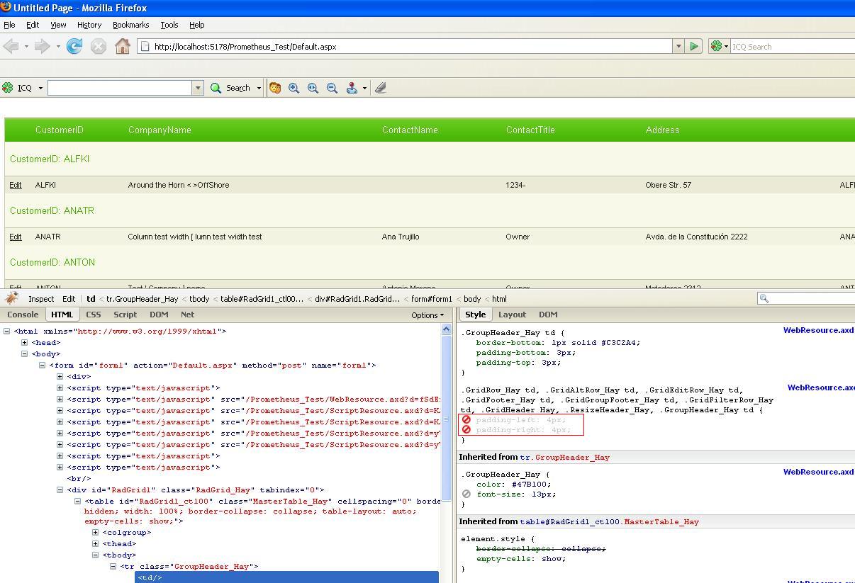 - Note that if the GroupSlitterColumn cells have side paddings (and they do when using embedded skins), you need to remove those paddings, otherwise the column cells will remain visible in IE7 and below. One way to remove the paddings is to use HeaderStyle-CssClass and ItemStyle-CssClass, or (if using RadGrid 2009.1+) to use the native CSS class for the GroupSplitterColumn cells (note that a custom CSS class for the RadGrid is used, otherwise you will remove the paddings from all RadGrids on the page (or website):