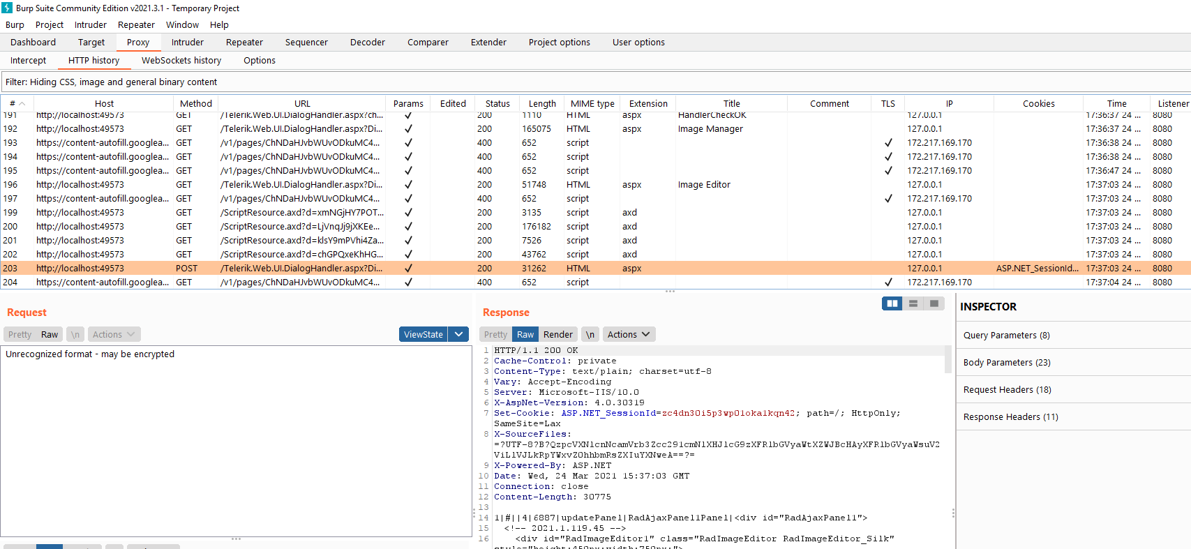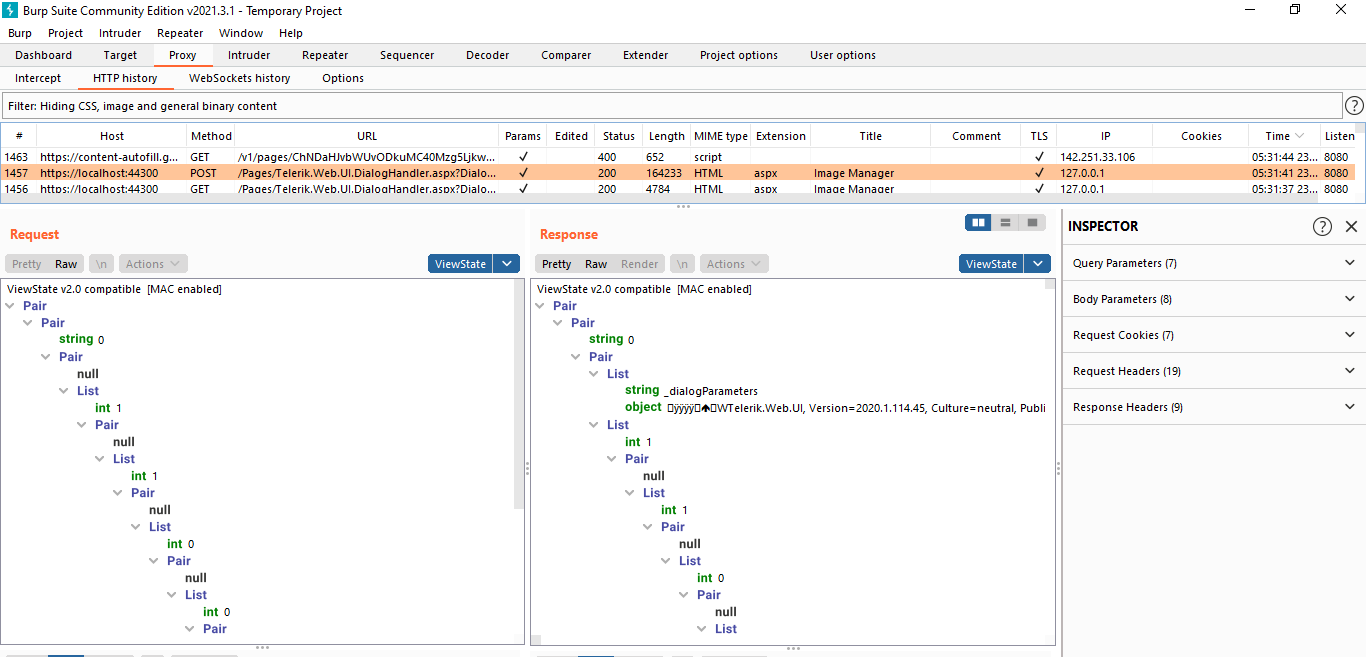 BurpSuite_1: After following above step, I checked the logs in burp suite and found that view state is not encrypted.