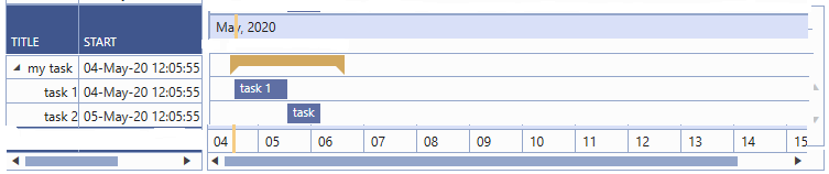 - GanttView - extracting the default template of the GanttItemsPresenter element and modifying the telerik:GanttPresenterPanel.Area property of its children elements. Note that this approach is merely a suggestion which is not well tested and I cannot guarantee that it will work properly in all expected scenarios.