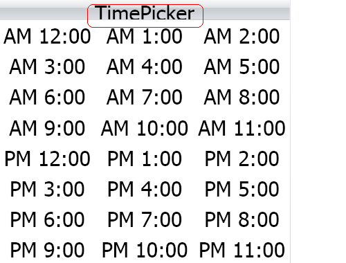 <telerik:RadTimePicker.ClockPanel> <ItemsPanelTemplate> <panels:RadUniformGrid Columns="4" /> </ItemsPanelTemplate></telerik:RadTimePicker.ClockPanel>If this is not to your liking you can modify the template or simply reduce the font size using the FontSize property.