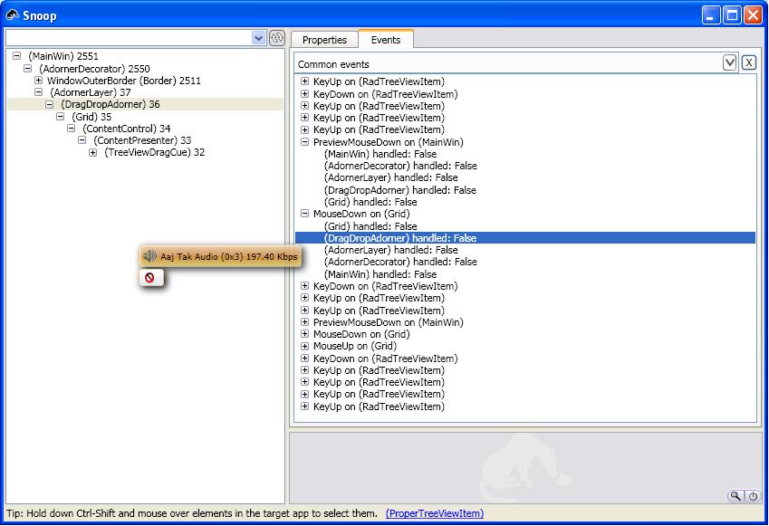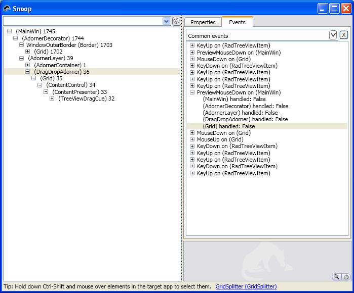 But I am developing a user control and that user control contain two rad tree which supports drag and drop. This user control is host in several other window. so I want to capture right click event on user control not on parent window i.e main win. I am attaching you a snap that i captured from snoop utility. Image show the events that has fired when i drag a item and press right click.