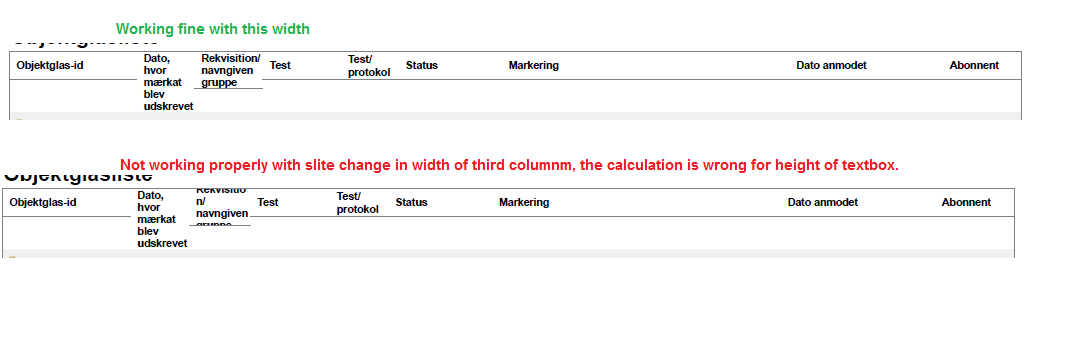 But the result is strange... for specific width that can adjust in 3 line works fine but not for 4 line. At the same time the column beside this one is working fine. The diff. between content is only one character is getting wrap in case of invalid printing.