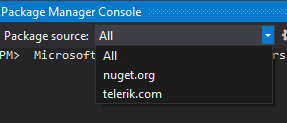 error: Unable to find package Microsoft.EntityFrameworkCore. No packages exist with this id in source(s): Microsoft Visual Studio Offline Packages, nuget.telerik.com