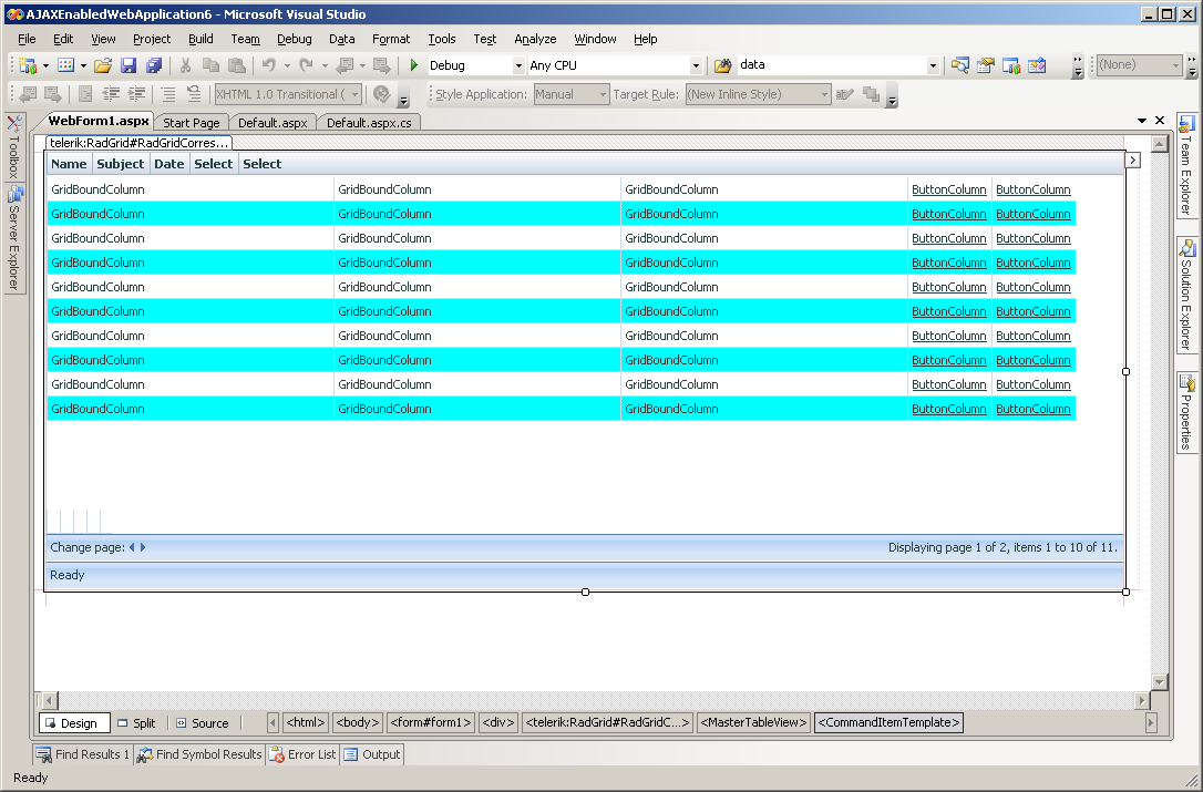 <telerik:GridBoundColumn DataField="SUBJECT" HeaderText="Subject"