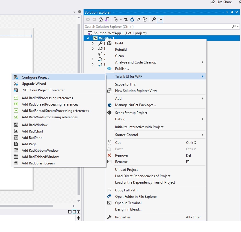 Configure Project Wizard and most of the other wizards are available only for full framework projects (.NET 4.0 and later). Configure Project wizard adds and removes references to the project and applies a selected theme in case NoXaml binaries are used. To configure applications targeting .NET Core or .NET 5 you can download Nuget packages using the Telerik Nuget server or using local package source. On the Download page for UI for WPF you can also find ZIP packages containing binaries built against .NET 6.