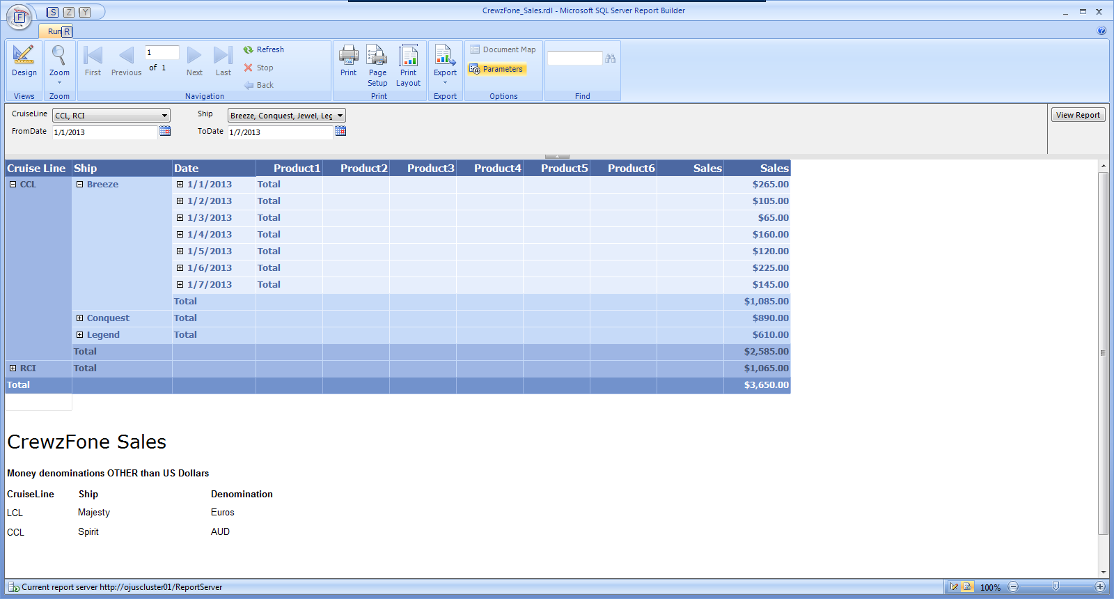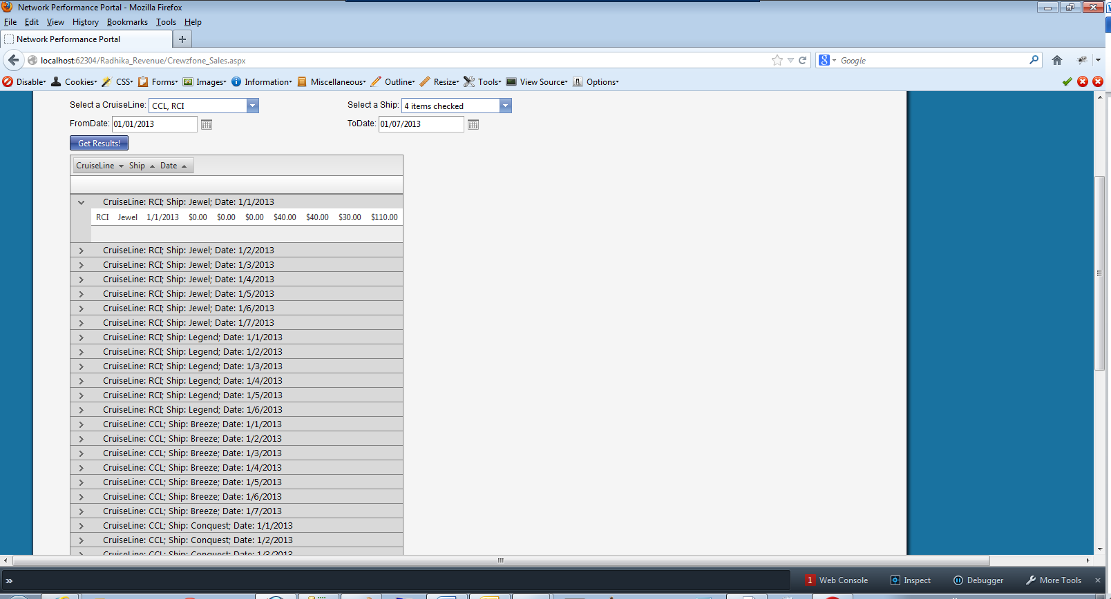 Notice that in the SSRS rpt, the data is grouped by CruiseLine, Ship, and Date. I want that same kind of grouping (not the look, just the correct grouping) in the Telerk Grid, but cannot achieve that desired result.