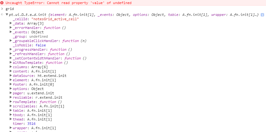 var sel = grid.select(); // Error here: TypeError: Cannot read property 'value' of undefined