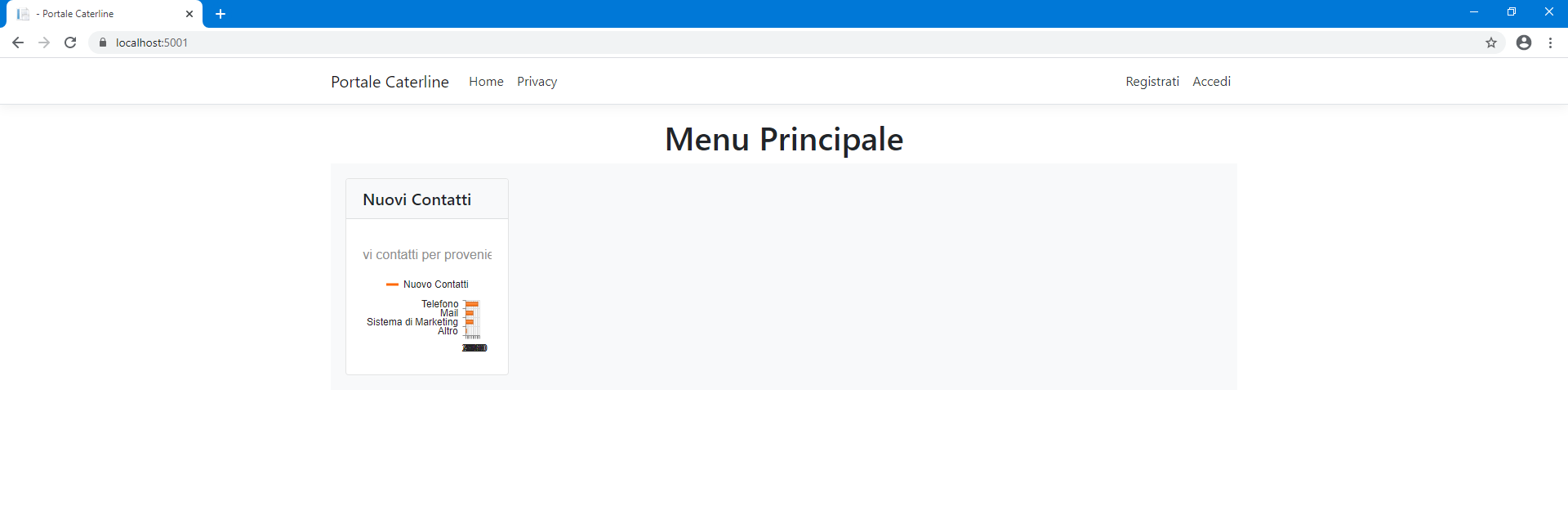 <script id="newcontacts-template" type="text/x-kendo-template"> @(Html.Kendo().Chart<Portale.Web2.Models.RolePages.ContactCount>() .Name("newContactChart") .Title("Nuovi contatti per provenienza") .Legend(legend => legend .Position(ChartLegendPosition.Top) ) .DataSource(ds => ds.Read(read => read.Action("NewContactRolePage", "Home"))) .Series(series => { series.Bar(model => model.Count).Name("Nuovo Contatti").CategoryField("Category"); }) .CategoryAxis(axis => axis //.Labels(labels => labels.Rotation(-90)) .Crosshair(c => c.Visible(true)) ) .ValueAxis(axis => axis.Numeric() .Labels(labels => labels.Format("{0:N0}")) ) .Tooltip(tooltip => tooltip .Visible(true) .Shared(true) .Format("{0:N0}") ) .HtmlAttributes(new { style = "height:100%;width:100%;" }) .ToClientTemplate() )</script><div class="row"> <div class="col"> @(Html.Kendo().TileLayout() .Name("rolepagetilelayout") .Columns(2) .Containers(c => { c.Add().Header(h => h.Text("Nuovi Contatti")).BodyTemplateId("newcontacts-template").ColSpan(2); }) .Reorderable(true) .Resizable(true) .Events(e=>e.Resize("onTileResize")) ) </div></div>