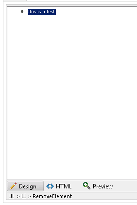 I've attached a picture showing the editor after I've clicked on the UL link. As you can see in the hierarchy, the LI tag is still selected.