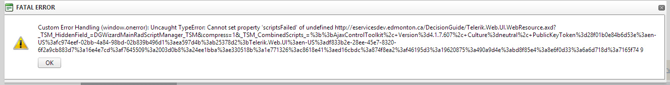 I am having an error (Cannot Set Property 'scriptsFailed' of undefined) which has to do with the webresource.axd when I access my application from outside our domain. I have no errors when running the app inside out domain.
