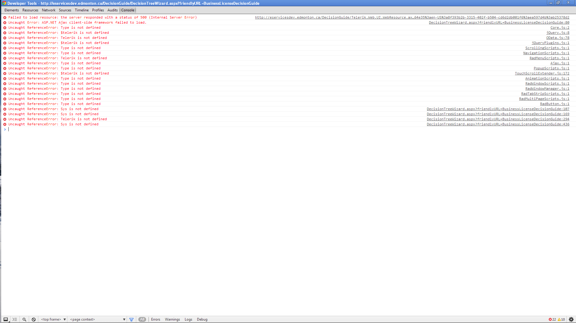 <system.webServer> <modules runAllManagedModulesForAllRequests="true"> <remove name="UrlRoutingModule" /> <add name="UrlRoutingModule" type="System.Web.Routing.UrlRoutingModule, System.Web, Version=4.0.0.0, Culture=neutral, PublicKeyToken=b03f5f7f11d50a3a" /> <remove name="RadUploadModule" /> <add name="RadUploadModule" type="Telerik.Web.UI.RadUploadHttpModule" preCondition="integratedMode" /> <remove name="RadCompression" /> <add name="RadCompression" type="Telerik.Web.UI.RadCompression" preCondition="integratedMode" /> <add name="ScriptModule" preCondition="integratedMode" type="System.Web.Handlers.ScriptModule, System.Web.Extensions, Version=1.0.61025.0, Culture=neutral, PublicKeyToken=31bf3856ad364e35" /> </modules> <validation validateIntegratedModeConfiguration="false" /> <handlers> <remove name="ChartImage_axd" /> <remove name="ScriptHandlerFactory" /> <remove name="ScriptHandlerFactoryAppServices" /> <remove name="ScriptResource" /> <remove name="Telerik_Web_UI_SpellCheckHandler_axd" /> <remove name="Telerik_Web_UI_DialogHandler_aspx" /> <remove name="Telerik_Web_UI_WebResource_axd" /> <remove name="Telerik_RadUploadProgressHandler_ashx" /> <remove name="WebServiceHandlerFactory-Integrated" /> <add name="ChartImage_axd" path="ChartImage.axd" type="Telerik.Web.UI.ChartHttpHandler" verb="*" preCondition="integratedMode" /> <add name="ScriptResource" verb="GET,HEAD" path="ScriptResource.axd" type="System.Web.Handlers.ScriptResourceHandler, System.Web.Extensions, Version=4.0.0.0, Culture=neutral, PublicKeyToken=31BF3856AD364E35" /> <add name="ScriptHandlerFactory" verb="*" path="*.asmx" preCondition="integratedMode" type="System.Web.Script.Services.ScriptHandlerFactory, System.Web.Extensions, Version=4.0.0.0, Culture=neutral, PublicKeyToken=31BF3856AD364E35" /> <add name="ScriptHandlerFactoryAppServices" verb="*" path="*_AppService.axd" preCondition="integratedMode" type="System.Web.Script.Services.ScriptHandlerFactory, System.Web.Extensions, Version=4.0.0.0, Culture=neutral, PublicKeyToken=31BF3856AD364E35" /> <add name="Telerik_Web_UI_WebResource_axd" path="Telerik.Web.UI.WebResource.axd" type="Telerik.Web.UI.WebResource" verb="*" preCondition="integratedMode" /> <add name="Telerik_RadUploadProgressHandler_ashx" path="Telerik.RadUploadProgressHandler.ashx" type="Telerik.Web.UI.RadUploadProgressHandler" verb="*" preCondition="integratedMode" /> <add name="Telerik.Web.UI.WebResource" path="Telerik.Web.UI.WebResource.axd" verb="*" type="Telerik.Web.UI.WebResource, Telerik.Web.UI" /> <add name="Telerik_Web_UI_SpellCheckHandler_axd" path="Telerik.Web.UI.SpellCheckHandler.axd" type="Telerik.Web.UI.SpellCheckHandler" verb="*" preCondition="integratedMode" /> <add name="Telerik_Web_UI_DialogHandler_aspx" path="Telerik.Web.UI.DialogHandler.aspx" type="Telerik.Web.UI.DialogHandler" verb="*" preCondition="integratedMode" /> <add name="UrlRoutingHandler" preCondition="integratedMode" verb="*" path="UrlRouting.axd" type="System.Web.HttpForbiddenHandler, System.Web, Version=2.0.0.0, Culture=neutral, PublicKeyToken=b03f5f7f11d50a3a" /> </handlers></system.webServer>If anyone can offer any help or suggestions, I would really appreciate it as I feel like I am dealing with a black box here.