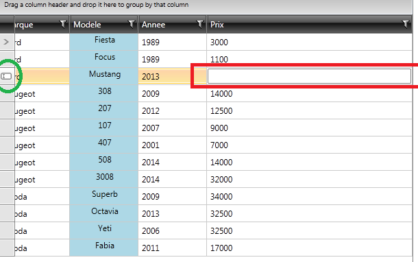 I play with samples. I build a grid, with no specific options, just following tutorial I can enter in Edit Mode in a cell (see green circle in picture) , but then I can not type anything (see red square in picture) !!