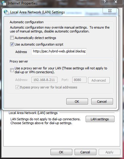 We have a Websense proxy on our company and we are using their PAC address under "use automatic configuration script" option in IE (Under LAN settings).