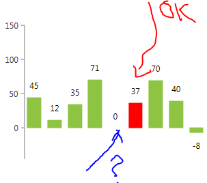 One way to go here is to have a zero-bar indication. This is when the value of the bar is zero, the bar to have a specific look, for example, it can be 2 pixels tall, have a yellow background and be slightly transparent. This way, the user will be able to see and click the bar. This you can do via the DefaultVisualStyleSelector.