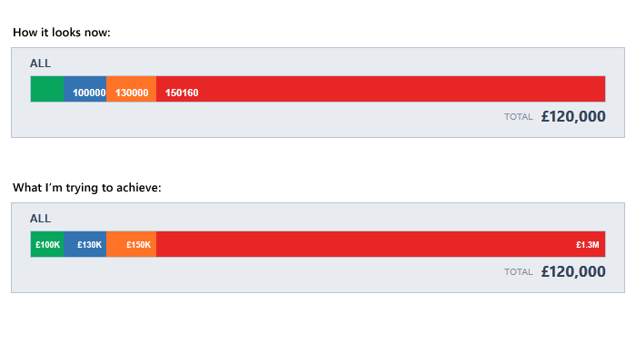 2. I cannot find anyway to declare a label format in the XAML, e.g I need to change 130000 to be shown as £130K