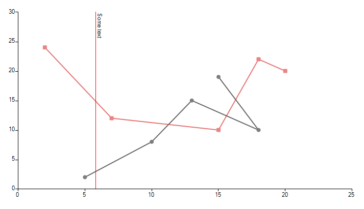 public RadForm1(){ InitializeComponent(); this.radChartView1.CreateRenderer += radChartView1_CreateRenderer; ScatterLineSeries scatterSeries = new ScatterLineSeries(); scatterSeries.DataPoints.Add(new ScatterDataPoint(15, 19)); scatterSeries.DataPoints.Add(new ScatterDataPoint(18, 10)); scatterSeries.DataPoints.Add(new ScatterDataPoint(13, 15)); scatterSeries.DataPoints.Add(new ScatterDataPoint(10, 8)); scatterSeries.DataPoints.Add(new ScatterDataPoint(5, 2)); scatterSeries.PointSize = new SizeF(8, 8); this.radChartView1.Series.Add(scatterSeries); ScatterLineSeries scatterSeries2 = new ScatterLineSeries(); scatterSeries2.DataPoints.Add(new ScatterDataPoint(2, 24)); scatterSeries2.DataPoints.Add(new ScatterDataPoint(7, 12)); scatterSeries2.DataPoints.Add(new ScatterDataPoint(15, 10)); scatterSeries2.DataPoints.Add(new ScatterDataPoint(18, 22)); scatterSeries2.DataPoints.Add(new ScatterDataPoint(20, 20)); scatterSeries2.Shape = new RoundRectShape(1); scatterSeries2.PointSize = new SizeF(8, 8); this.radChartView1.Series.Add(scatterSeries2); CartesianGridLineAnnotation annotation1 = new CartesianGridLineAnnotation(); annotation1.Axis = this.radChartView1.Axes[0] as CartesianAxis; annotation1.Value = 5.8; annotation1.Label = "Some text"; annotation1.BorderColor = Color.Red; annotation1.BorderDashStyle = DashStyle.Solid; annotation1.BorderWidth = 1; this.radChartView1.Annotations.Add(annotation1);}private void radChartView1_CreateRenderer(object sender, ChartViewCreateRendererEventArgs e){ e.Renderer = new CustomRenderer(e.Area as CartesianArea);}public class CustomRenderer : CartesianRenderer{ public CustomRenderer(CartesianArea area) : base(area) { } protected override void InitializeAnnotations(AnnotationDrawMode drawMode) { for (int i = 0; i < this.Area.Annotations.Count; i++) { if (this.Area.Annotations[i] is CartesianGridLineAnnotation) { this.DrawParts.Add(new CustomCartesianGridLineAnnotationDrawPart(this.Area.Annotations[i] as CartesianGridLineAnnotation, this)); } } }}public class CustomCartesianGridLineAnnotationDrawPart : CartesianGridLineAnnotationDrawPart{ public CustomCartesianGridLineAnnotationDrawPart(CartesianGridLineAnnotation element, CartesianRenderer renderer) : base(element, renderer) { } public override void Draw() { FieldInfo fi = typeof(CartesianGridLineAnnotation).GetField("model", BindingFlags.Instance | BindingFlags.NonPublic); ChartAnnotationModel model = fi.GetValue(this.Element) as ChartAnnotationModel; RectangleF rect = ChartRenderer.ToRectangleF(model.LayoutSlot); rect.Offset(this.ViewportOffsetX, this.ViewportOffsetY); Graphics graphics = this.Renderer.Surface as Graphics; RadGdiGraphics radGraphics = new RadGdiGraphics(graphics); Rectangle clipRect = ChartRenderer.ToRectangle(this.Element.View.GetArea<CartesianArea>().AreaModel.PlotArea.LayoutSlot); clipRect.Offset((int)this.ViewportOffsetX, (int)this.ViewportOffsetY); graphics.SetClip(clipRect); GraphicsPath path = new GraphicsPath(); path.AddLine(rect.Location, new PointF(rect.Right, rect.Bottom)); BorderPrimitiveImpl border = new BorderPrimitiveImpl(this.Element, null); border.PaintBorder(radGraphics, null, path, rect); rect.Size = graphics.MeasureString(this.Element.Label, this.Element.Font); rect.Offset(this.Element.PositonOffset.Width + 1, this.Element.PositonOffset.Height + 1); TextParams tp = new TextParams(); tp.textOrientation = Orientation.Vertical; tp.font = this.Element.Font; tp.foreColor = this.Element.ForeColor; tp.paintingRectangle = new RectangleF(rect.X, rect.Y, rect.Height, rect.Width); tp.text = this.Element.Label; FillPrimitiveImpl fill = new FillPrimitiveImpl(this.Element, null); fill.PaintFill(radGraphics, null, rect); radGraphics.DrawString(tp, new SizeF(rect.Height, rect.Width)); }}I hope this information helps. If you need any further assistance please don't hesitate to contact me.
