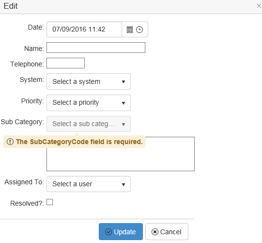 <p> <span class="fieldlabel"> System: </span> @(Html.Kendo().DropDownListFor(m => m.system).Name("system").OptionLabel("Select a system").DataValueField("Code").DataTextField("Description").DataSource(src => src.Read(rd => rd.Action("GetSystems", "Home"))) ) @Html.ValidationMessageFor(model => model.system)</p> <p> <span class="fieldlabel"> Priority: </span> @(Html.Kendo().DropDownListFor(m => m.Priority).Name("Priority").OptionLabel("Select a priority").DataValueField("Code").DataTextField("Description").DataSource(src => src.Read(rd => rd.Action("GetPriorities", "Home"))) ) @Html.ValidationMessageFor(model => model.Priority) </p> <p> <span class="fieldlabel"> Sub Category: </span> @(Html.Kendo().DropDownListFor(m => m.SubCategoryCode).Name("SubCategoryCode").OptionLabel("Select a sub category").DataValueField("Code").DataTextField("Description").DataSource(src => src.Read(rd => rd.Action("GetSubCategoriesbySystem", "Home").Data("filterSystems")).ServerFiltering(true)) .Enable(false).AutoBind(false).CascadeFrom("system") ) @Html.ValidationMessageFor(model => model.SubCategoryCode) </p>How can I stop this?