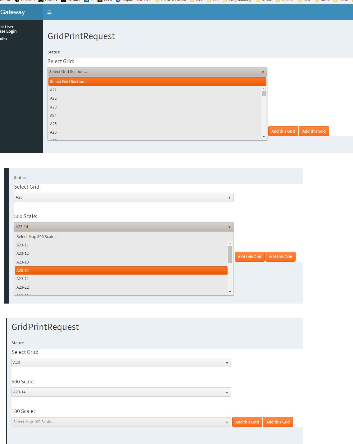 <h4>Select Grid:</h4> @(Html.Kendo().DropDownList() .Name("MainGrid") .HtmlAttributes(new { style = "width:50%" }) .OptionLabel("Select Grid Section...") .DataTextField("Gridid") .DataValueField("Gridid") .DataSource(source => { source.Read(read => { read.Action("GetCascadeMainGrid", "GridPrint"); }); }) )@(Html.Kendo().DropDownList() .Name("Grid500") .HtmlAttributes(new { style = "width:50%" }) .OptionLabel("Select Map 500 Scale...") .DataTextField("MapName") .DataValueField("MapName") .DataSource(source => { source.Read(read => { read.Action("GetCascadeGrid500", "GridPrint") .Data("filterGrid500"); }) .ServerFiltering(true); }) .Enable(false) .AutoBind(false) .CascadeFrom("MainGrid") ) <h4 style="margin-top: 2em;">100 Scale:</h4> @(Html.Kendo().DropDownList() .Name("Grid100") .HtmlAttributes(new { style = "width:50%" }) .OptionLabel("Select Map 100 Scale...") .DataTextField("MapName") .DataValueField("Pagenumber") .DataSource(source => { source.Read(read => { read.Action("GetCascadeGrid100", "GridPrint") .Data("filterGrid100"); }) .ServerFiltering(true); }) .Enable(true) .AutoBind(false) .CascadeFrom("Grid500") )Hello Jason,