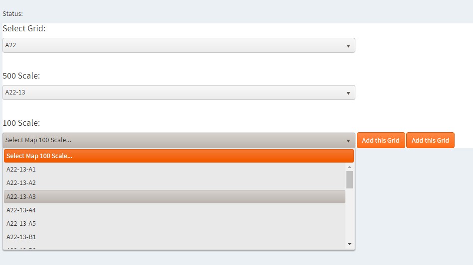 <h4>Select Grid:</h4> @(Html.Kendo().DropDownList() .Name("MainGrid") .HtmlAttributes(new { style = "width:50%" }) .OptionLabel("Select Grid Section...") .DataTextField("Gridid") .DataValueField("Gridid") .DataSource(source => { source.Read(read => { read.Action("GetCascadeMainGrid", "GridPrint"); }); }) ) <h4 style="margin-top: 2em;">500 Scale:</h4> @(Html.Kendo().DropDownList() .Name("Grid500") .HtmlAttributes(new { style = "width:50%" }) .OptionLabel("Select Map 500 Scale...") .DataTextField("MapName") .DataValueField("Pagenumber") .DataSource(source => { source.Read(read => { read.Action("GetCascadeGrid500", "GridPrint") .Data("filterGrid500"); }) .ServerFiltering(true); }) .Enable(false) .AutoBind(false) .CascadeFrom("MainGrid") ) <button class="k-button k-primary" id="get" style="margin-top: 0em; ">Add this Grid</button> <script> function filterGrid500() { return { MainGrid: $("#MainGrid").val() }; } </script> <h4 style="margin-top: 2em;">100 Scale:</h4> @(Html.Kendo().DropDownList() .Name("Grid100") .HtmlAttributes(new { style = "width:50%" }) .OptionLabel("Select Map 100 Scale...") .DataTextField("MapName") .DataValueField("Pagenumber") .DataSource(source => { source.Read(read => { read.Action("GetCascadeGrid100", "GridPrint") .Data("filterGrid100"); }) .ServerFiltering(true); }) .Enable(false) .AutoBind(false) .CascadeFrom("Grid500") ) <button class="k-button k-primary" id="get2" style="margin-top: 0em;">Add this Grid</button> <script> function filterGrid100() { return { Grid500: $("#Grid500").val() }; } </script></div><script>