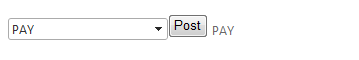 <telerik:RadComboBox ID="RadComboBox1" runat="server" AllowCustomText="True" MarkFirstMatch="True"> <Items> <telerik:RadComboBoxItem runat="server" /> <telerik:RadComboBoxItem Text="PAY" Value="PAY" /> <telerik:RadComboBoxItem Text="PAYB" Value="PAYB" /> </Items> </telerik:RadComboBox> <asp:Button ID="Postback" runat="server" Text="Post" OnClick="Postback_Click" /> <asp:Label ID="Label1" runat="server" Text=""></asp:Label>