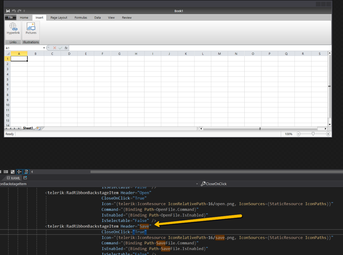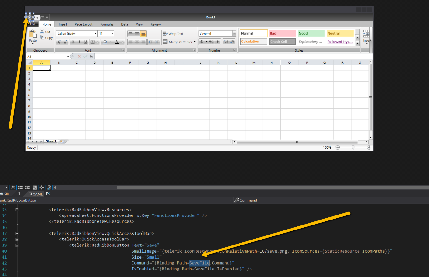 How to create "custom command". I am playing with sample Spreadsheet that comes with Telerik UI for WPF template > Excel.