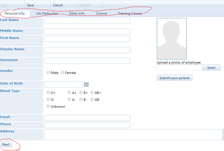 <%@ Page Title="" Language="VB" MasterPageFile="~/LRDB.master" AutoEventWireup="false" CodeFile="HR_employee_details.aspx.vb" Inherits="HR_HR_employee_details" %><%@ Register TagPrefix="telerik" Namespace="Telerik.Web.UI" Assembly="Telerik.Web.UI" %><asp:Content ID="Content1" ContentPlaceHolderID="head" Runat="Server"> <style type="text/css"> .table_photo { width: 100px; height: auto; } .table_header { width: 150px; height: 15px; background-color:#E7EEF6; } .table_content { /* width: 527px;*/ height: 15px; } .style6 { width: 150px; height: 15px; background-color: #E7EEF6; font-weight: bold; } </style> <script type="text/javascript"> function UpdateValidationGroup(sender, args) { args.set_cancel(!Page_IsValid); } function display_name() { if (document.getElementById('<%=tb_middle_name.ClientID%>').value != "") { document.getElementById('<%=tb_display_name.ClientID%>').value = document.getElementById('<%=tb_last_name.ClientID%>').value + ", " + document.getElementById('<%=tb_middle_name.ClientID%>').value + " " + document.getElementById('<%=tb_first_name.ClientID%>').value; document.getElementById('<%=tb_username.ClientID%>').value = document.getElementById('<%=tb_first_name.ClientID%>').value.toLowerCase() + document.getElementById('<%=tb_last_name.ClientID%>').value.toLowerCase(); } else { document.getElementById('<%=tb_display_name.ClientID%>').value = document.getElementById('<%=tb_last_name.ClientID%>').value + ", " + document.getElementById('<%=tb_first_name.ClientID%>').value; document.getElementById('<%=tb_username.ClientID%>').value = document.getElementById('<%=tb_first_name.ClientID%>').value.replace(/[^A-Za-z0-9]/g, "").toLowerCase() + document.getElementById('<%=tb_last_name.ClientID%>').value.replace(/[^A-Za-z0-9]/g, "").toLowerCase(); } } // function ValidateChkList(source, arguments) { // arguments.IsValid = IsCheckBoxChecked() ? true : false; // } // // function IsCheckBoxChecked() { // var isChecked = false; // var list = document.getElementById('<%=CheckBoxList_RoleType.ClientID%>'); // if (list != null) { // for (var i = 0; i < list.rows.length; i++) { // for (var j = 0; j < list.rows[i].cells.length; j++) { // var listControl = list.rows[i].cells[j].childNodes[0]; // if (listControl.checked) { // isChecked = true; // } // } // } // } // return isChecked; // } function verifyCheckboxList(source, arguments) { var val = document.getElementById("<%=CheckBoxList_RoleType.ClientID%>"); var col = val.getElementsByTagName("*"); if (col != null) { for (i = 0; i < col.length; i++) { if (col.item(i).tagName == "INPUT") { if (col.item(i).checked) { arguments.IsValid = true; return; } } } } arguments.IsValid = false; } function verifyCheckboxList2(source, arguments) { var val = document.getElementById("<%=CheckBoxList_Language.ClientID%>"); var col = val.getElementsByTagName("*"); if (col != null) { for (i = 0; i < col.length; i++) { if (col.item(i).tagName == "INPUT") { if (col.item(i).checked) { arguments.IsValid = true; return; } } } } arguments.IsValid = false; } </script></asp:Content><asp:Content ID="Content2" ContentPlaceHolderID="ContentPlaceHolder2" Runat="Server"> <telerik:RadScriptBlock ID="RadScriptBlock1" runat="server"><script type="text/javascript"> var date = new Date(); function RadDatePicker_SetMaxDateToCurrentDate(sender, args) { var arr = new Array(date.getFullYear(), date.getMonth() + 1, date.getDate()); sender.set_rangeMaxDate(arr); } // on upload button click temporarily disables ajax to perform // upload actions function conditionalPostback(sender, args) { if (args.get_eventTarget() == "<%= RadButton1.UniqueID %>") { args.set_enableAjax(false); } } </script> </telerik:RadScriptBlock> <telerik:RadToolBar ID="rtbMenu" runat="server" Width="100%" Skin="Windows7"> <Items><%-- <telerik:RadToolBarButton Value="New" Text="New" Width="80px" CausesValidation="false" /> <telerik:RadToolBarButton IsSeparator="true" />--%> <telerik:RadToolBarButton Value="Search" Text="Search" Width="80px" CausesValidation="false" Visible="false"/> <telerik:RadToolBarButton IsSeparator="true" Visible="false" /> <telerik:RadToolBarButton Value="Delete" Text="Delete" Width="80px" Enabled="true" CausesValidation="false"/> <telerik:RadToolBarButton IsSeparator="true" /> <telerik:RadToolBarButton Value="Edit" Text="Edit" Width="80px" Enabled="true" CausesValidation="false"/> <telerik:RadToolBarButton IsSeparator="true" /> <telerik:RadToolBarButton Value="Save" Text="Save" Width="80px" Enabled="true" /> <telerik:RadToolBarButton IsSeparator="true" /> <telerik:RadToolBarButton Value="Cancel" Text="Cancel" Width="80px" Visible="false" CausesValidation="false" /> <telerik:RadToolBarButton Value="Back" Text="Back" Width="80px" Visible="true" CausesValidation="false"/> <telerik:RadToolBarButton IsSeparator="true" /> <telerik:RadToolBarButton Value="SIMPER" Text="SIMPER" Width="80px" Enabled="false" CausesValidation="false" /> <telerik:RadToolBarButton IsSeparator="true" /> <telerik:RadToolBarButton Value="BackSeparator" IsSeparator="true" Visible="false" /> </Items> </telerik:RadToolBar> <div style="margin-left:5px;"> <%--<telerik:RadAjaxPanel ID="Panel_content" runat="server" Enabled="false" clientevents-onrequeststart="conditionalPostback">--%> <telerik:RadTabStrip ID="RadTabStrip1" runat="server" MultiPageID="RadMultiPage1" AutoPostBack="True" ClickSelectedTab="True" SelectedIndex="0"> <Tabs> <telerik:RadTab runat="server" Text="Personal Info." PageViewID="Tab_personal" Selected="True" CausesValidation="true" OnClientTabSelecting="UpdateValidationGroup" ValidationGroup="ValidatePersonal"> </telerik:RadTab> <telerik:RadTab runat="server" Text="Job Particulars" PageViewID="Tab_job" CausesValidation="true" OnClientTabSelecting="UpdateValidationGroup" ValidationGroup="ValidateJob"> </telerik:RadTab> <telerik:RadTab runat="server" Text="Other Info." PageViewID="Tab_Others" CausesValidation="true" OnClientTabSelecting="UpdateValidationGroup" ValidationGroup="ValidateOthers"> </telerik:RadTab> <teleri