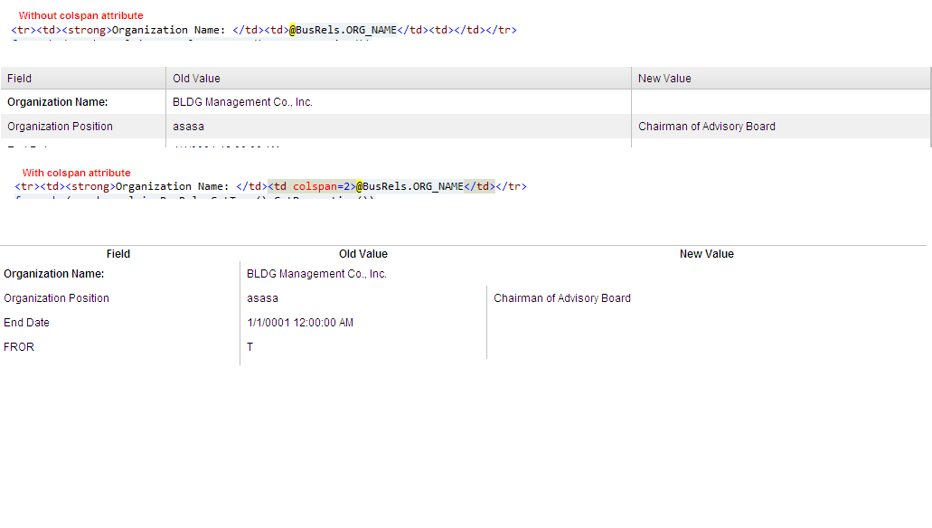 See attached image for what the grid looks like before and after adding the colspan attribute.