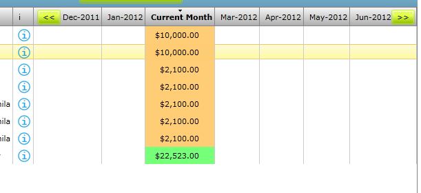 In the screenshot I'm showing columns which are auto generated. Also as you can see first and last month in the range have arrows to shift months, so column heading and data is being shifted when person clicks it.