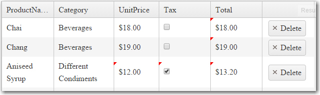 value on checkbox click. For example, if checkbox in checked, the tax should be