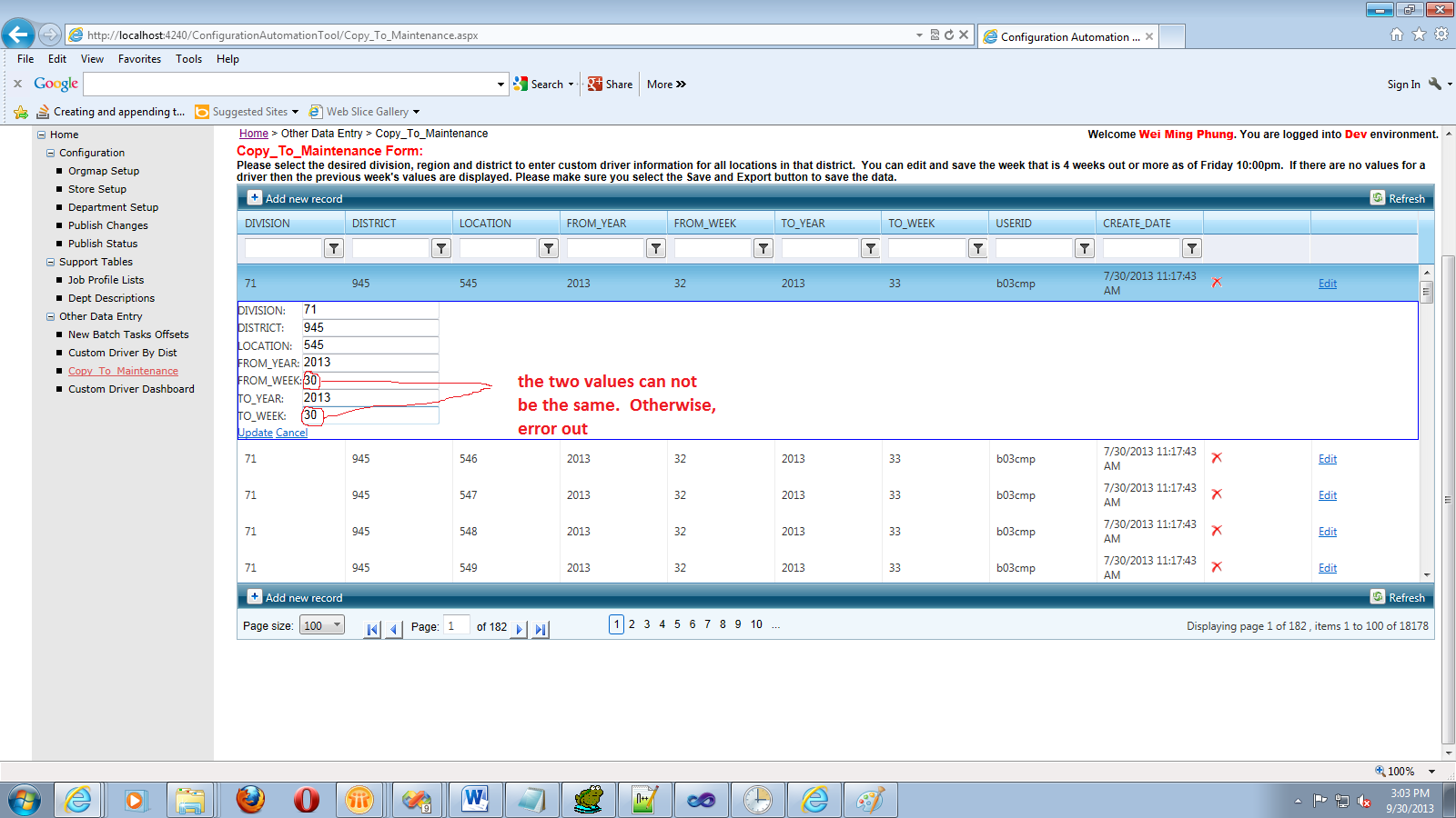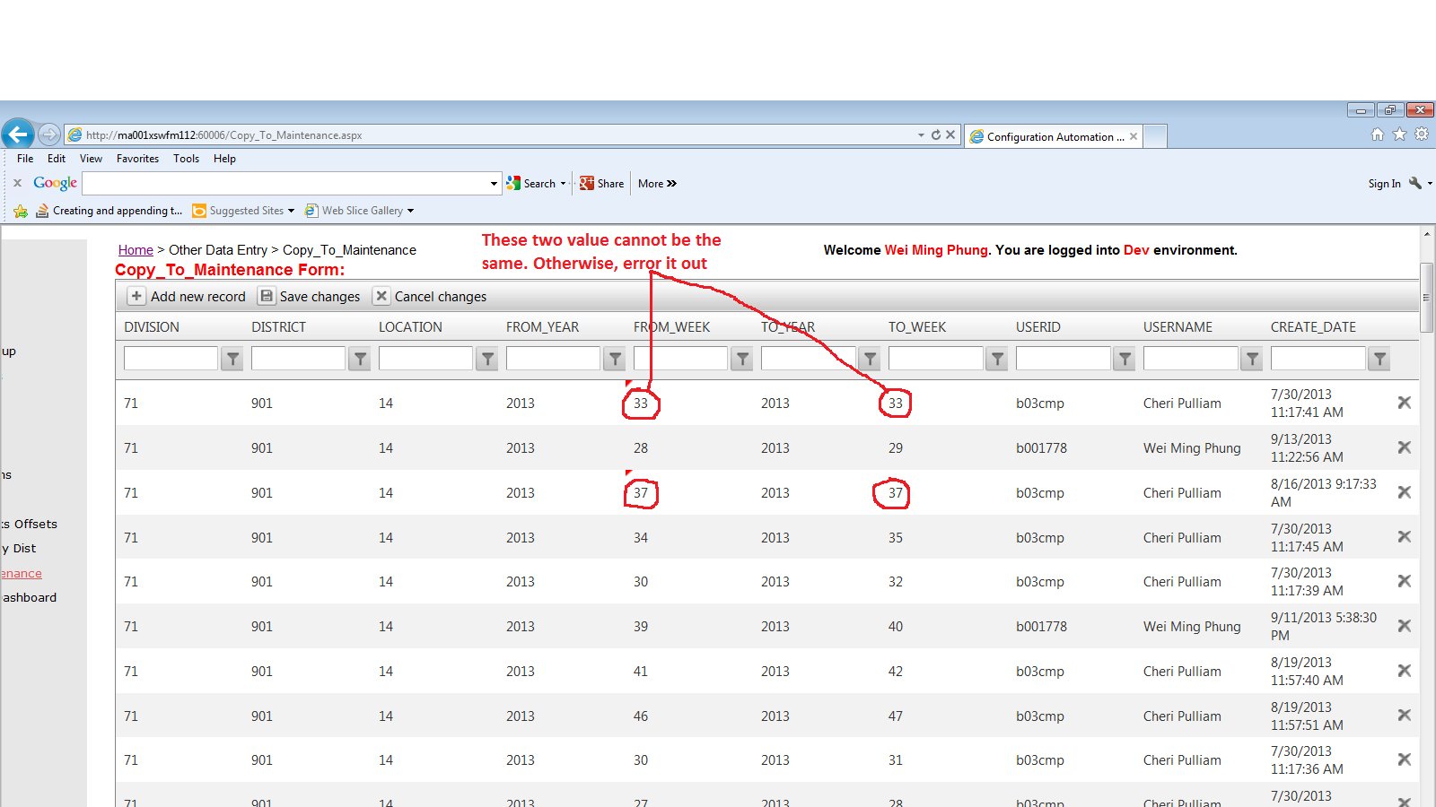 Please tell me how to validate the cell values. If the two values are the same, error it out and do not update them. Please refer to the PNG.