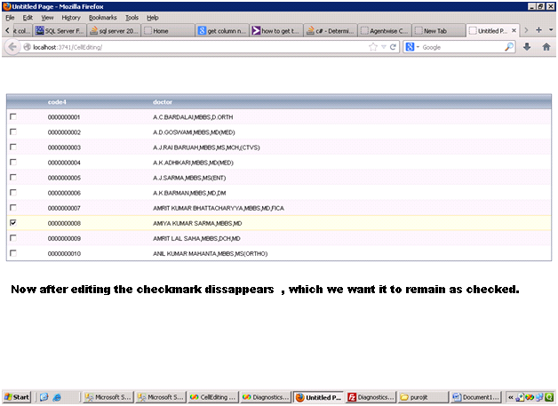 One particular column will be edited on clicking the particular cell in the grid.We have already done this,but we want the checkboxes to remain as checked after editing which is not happening in our case.