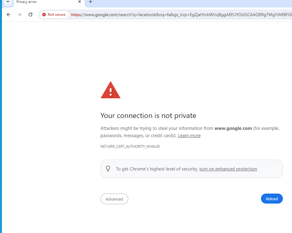 In my program; I use Fiddler Core. When ran on a pc; it set's the proxy as it should but when trying to browse the network with the proxy on; i'm getting "Your connection is Not private"; error message on all browsers. Please see attached photos for reference. Here is my running code: