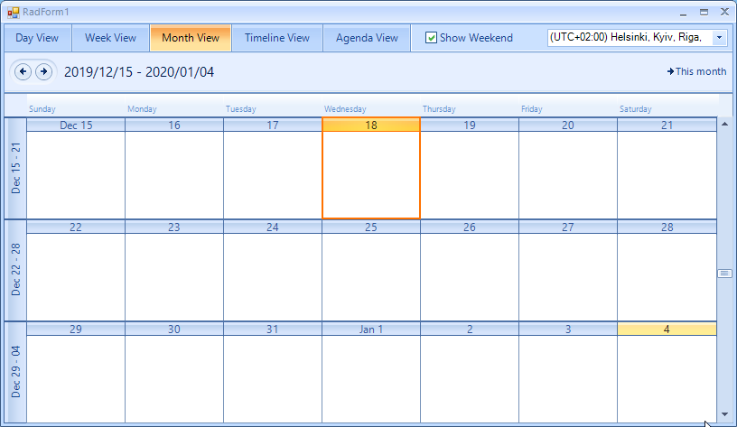 In Day and Week View it works, but in the Month View it don“t work, and it is alwasy grey.